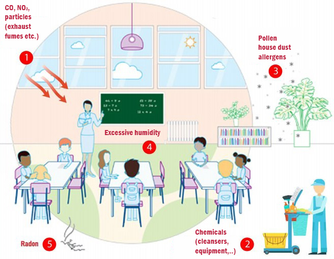 Classrooms are high-occupancy spaces where airborne pollutants can build up quickly. Students breathe faster than adults and their lungs are still developing, making them more vulnerable to airborne contaminants. Common indoor pollutants in schools include fine dust particles (PM2.5), allergens, bacteria, viruses and elevated carbon dioxide levels.