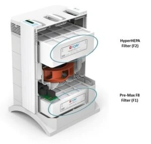 Most airpurifiers only filter particles larger than 0.3 microns in size, but 90% of all ultra fine particles are actually smaller than 0.3 microns. This means that most air purifiers are only filtering 10% of the particles in your air. IQAir's patented HyperHEPA filters are the first filters tested and certified to filter down to 0.003 microns with a guaranteed minimum efficiency of 99.95% irrespective of particle size or fan speed. This allows your HealthPro to capture the ultra fine particles that other air purifiers miss.