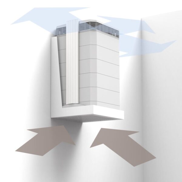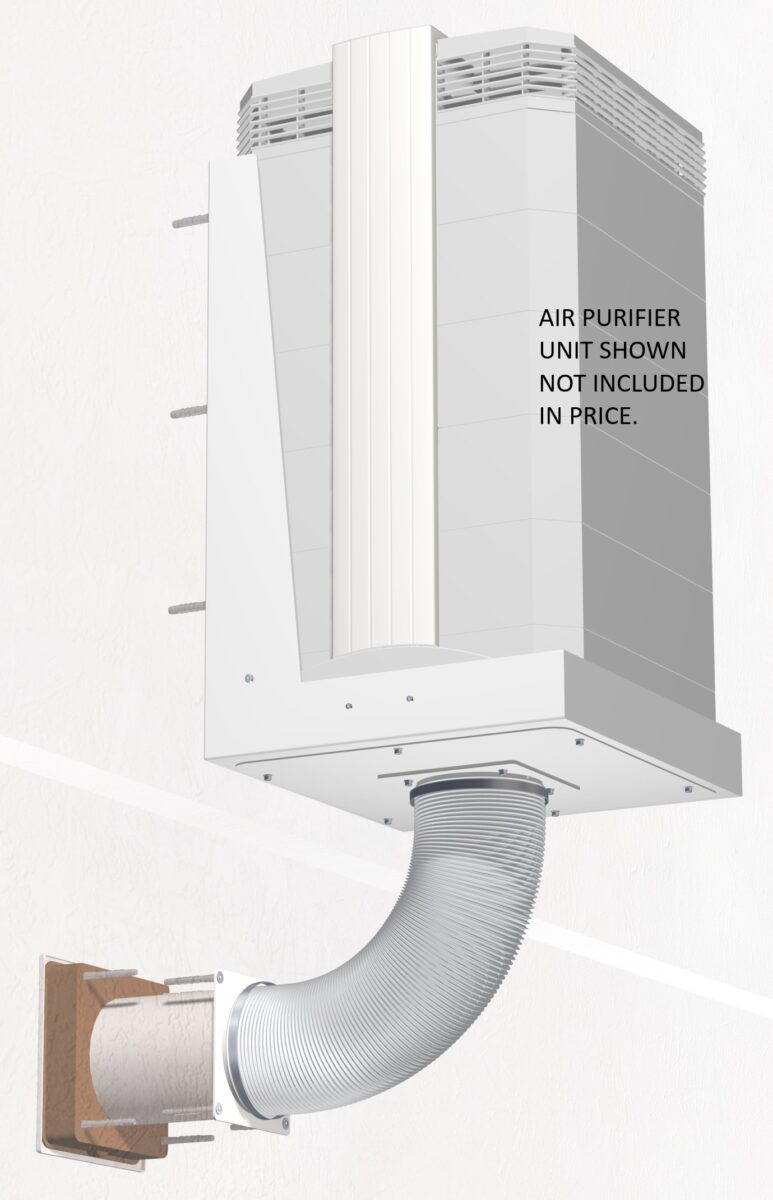 Clever IQAir accessory for saving floor space and creating negative or positive pressure inside a room.