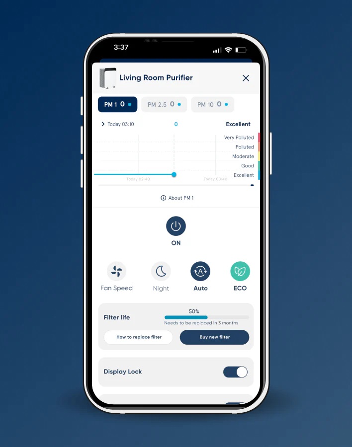 Exclusive features in the highly rated Blueair appEnjoy the convenience of the of your air purifier activating you are a few miles away from home.