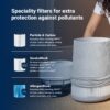 Let's Clear the Air QuieterThe Blue Max 3450i operates on low at 23dB, and is never louder than 50dB³. Quietest by QuietMark⁴. | ![]() |