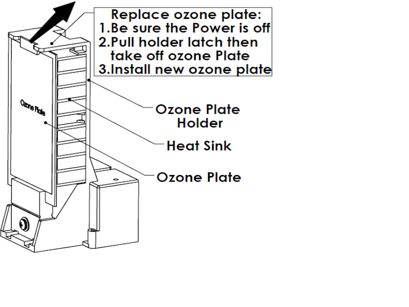 When the air purifier no longer produces enough ozone to be effective, the ozone plates must be replaced by a qualified electrician or appliance workshop. (Approx. after 6,000hours). 2 Spares included with purchase.